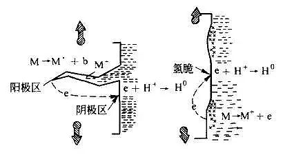 零件或構件在應力和腐蝕介質作用下,表面的氧化膜被腐蝕而受到破壞,破壞的表面和未破壞的表面分別形成陽極和陰極,陽極處的金屬成為離子而被溶解,產生電流流向陰極。
